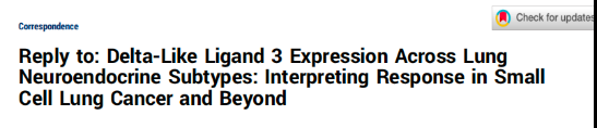 [5] Wermke M, Gambardella V, Kuboki Y, Felip E, Sanmamed MF, Alese OB, Sayehli CM, Arriola E, Wolf J, Villaruz LC, Bertulis J, Studeny M, Bouzaggou M, Fang X and Morgensztern D. Phase I Dose-Escalation Results for the Delta-Like Ligand 3/CD3 IgG-Like T-Cell Engager Obrixtamig (BI 764532) in Patients With Delta-Like Ligand 3+ Small Cell Lung Cancer or Neuroendocrine Carcinomas. J Clin Oncol 2025; 43: 3021-3031.