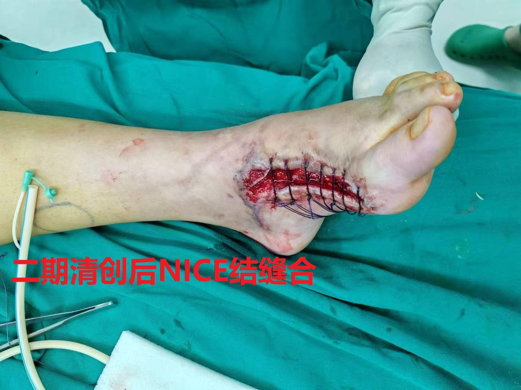 Nice自锁线结牵张技术闭合足部创面
